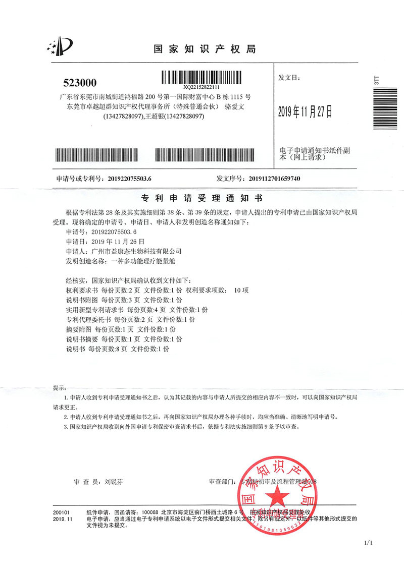 專利號(hào):ZL201930621831.4  ZL201922075503.6生物波細(xì)胞激活能量艙型號(hào):YNLC801B名稱:生物波細(xì)胞激活能量...
